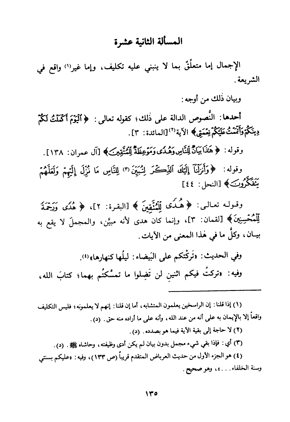 الْإِجْمَالُ إِمَّا مُتَعَلِّقٌ بِمَا لَا يَنْبَنِي عَلَيْهِ تَكْلِيفٌ، وَإِمَّا غَيْرُ1 وَاقِعٍ فِي الشَّرِيعَةِ.