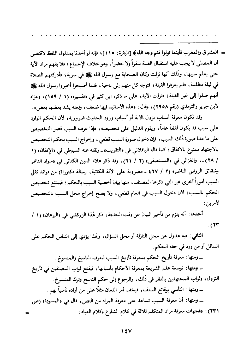 - ومنها: توسعة علم الشريعة بمعرفة الأحكام بأسبابها، فيفتح ثواب المصنفين في تأريخ النزول، وثواب المجتهدين بالنظر في ذلك، والرجوع إلى حكم الناسخ وترك المنسوخ.