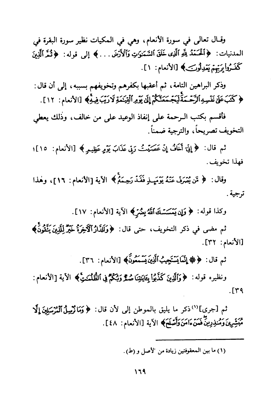 فَأَقْسَمَ بِكَتْبِ الرَّحْمَةِ عَلَى إِنْفَاذِ الْوَعِيدِ عَلَى مَنْ خَالَفَ، وَذَلِكَ يُعْطِي التَّخْوِيفَ تَصْرِيحًا، وَالتَّرْجِيَةَ ضِمْنًا.