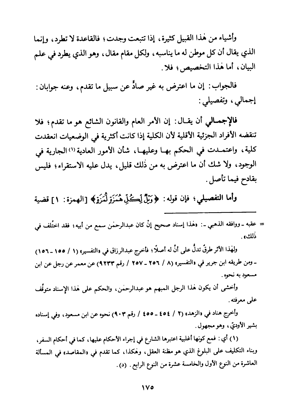 وَأَمَّا التَّفْصِيلِيُّ؛ فَإِنَّ قَوْلَهُ: {وَيْلٌ لِكُلِّ هُمَزَةٍ لُمَزَةٍ} [الْهُمَزَةِ: 1] قضية