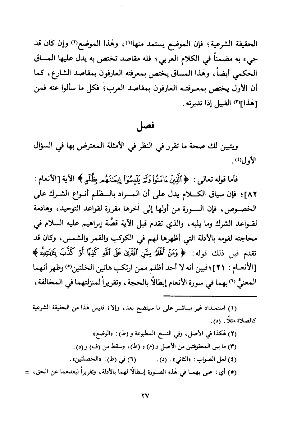 وَيَتَبَيَّنُ لَكَ صِحَّةُ مَا تَقَرَّرَ فِي النَّظَرِ فِي الْأَمْثِلَةِ الْمُعْتَرَضِ بِهَا فِي السُّؤَالِ الْأَوَّلِ4.