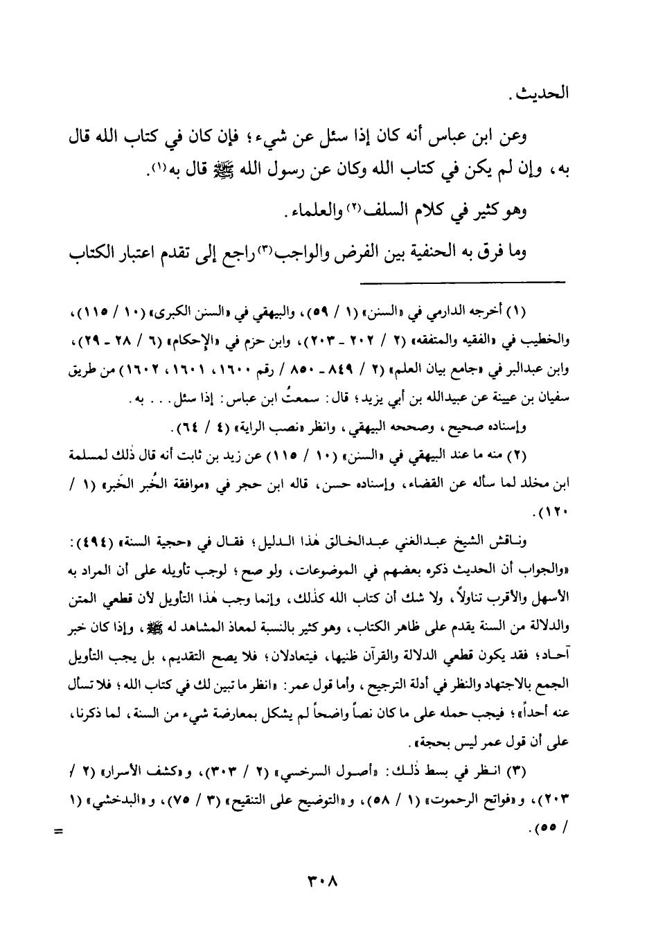 وَمَا فَرَّقَ بِهِ الْحَنَفِيَّةُ بَيْنَ الْفَرْضِ وَالْوَاجِبِ3 رَاجِعٌ إِلَى تَقَدُّمِ اعتبار الكتاب