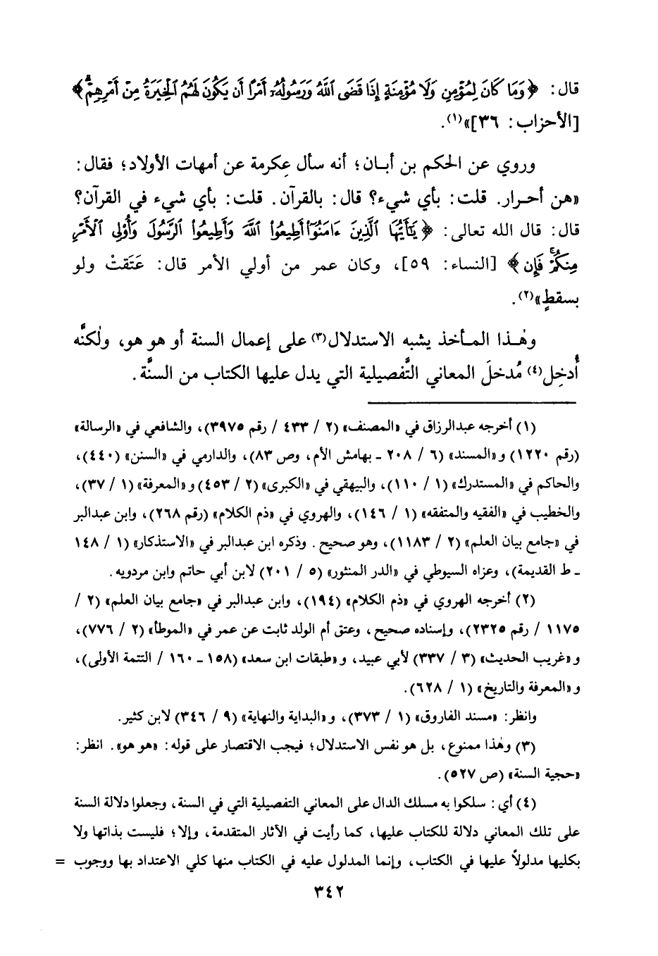 2 أخرجه الهروي في "ذم الكلام" "194"، وابن عبد البر في "جامع بيان العلم" "2/ 1175/ رقم 2325"، وإسناده صحيح، وعتق أم الولد ثابت عن عمر في "الموطأ" "2/ 776"، و"غريب الحديث" "3/ 337"