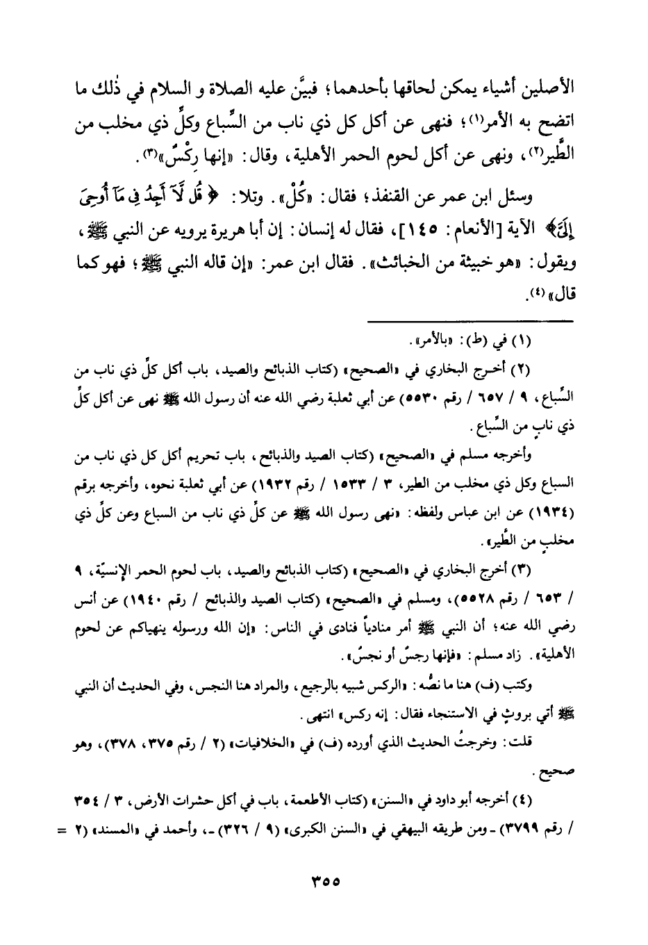 3 أخرج البخاري في "الصحيح" "كتاب الذبائح والصيد، باب لحوم الحمر الإنسية، 9/ 653/ رقم 5528"، ومسلم في "الصحيح" "كتاب الصيد والذبائح/ رقم 1940" عن أنس -رضي الله عنه- أن النبي -صلى الله عليه وسلم- أمر مناديًا فنادى في الناس: "إن الله ورسوله ينهيانكم عن لحوم الأهلية". زاد مسلم: "فإنها رجس أو نجس".
