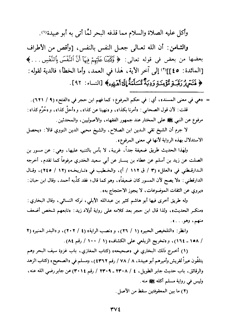 وانظر: "التلخيص الحبير" "1/ 26"، و"نصب الراية" "4/ 202"، و"البدر المنير" "2/ 158-164"، و"تخريج الزيلعي على الكشاف" "1/ 100/ رقم 84".