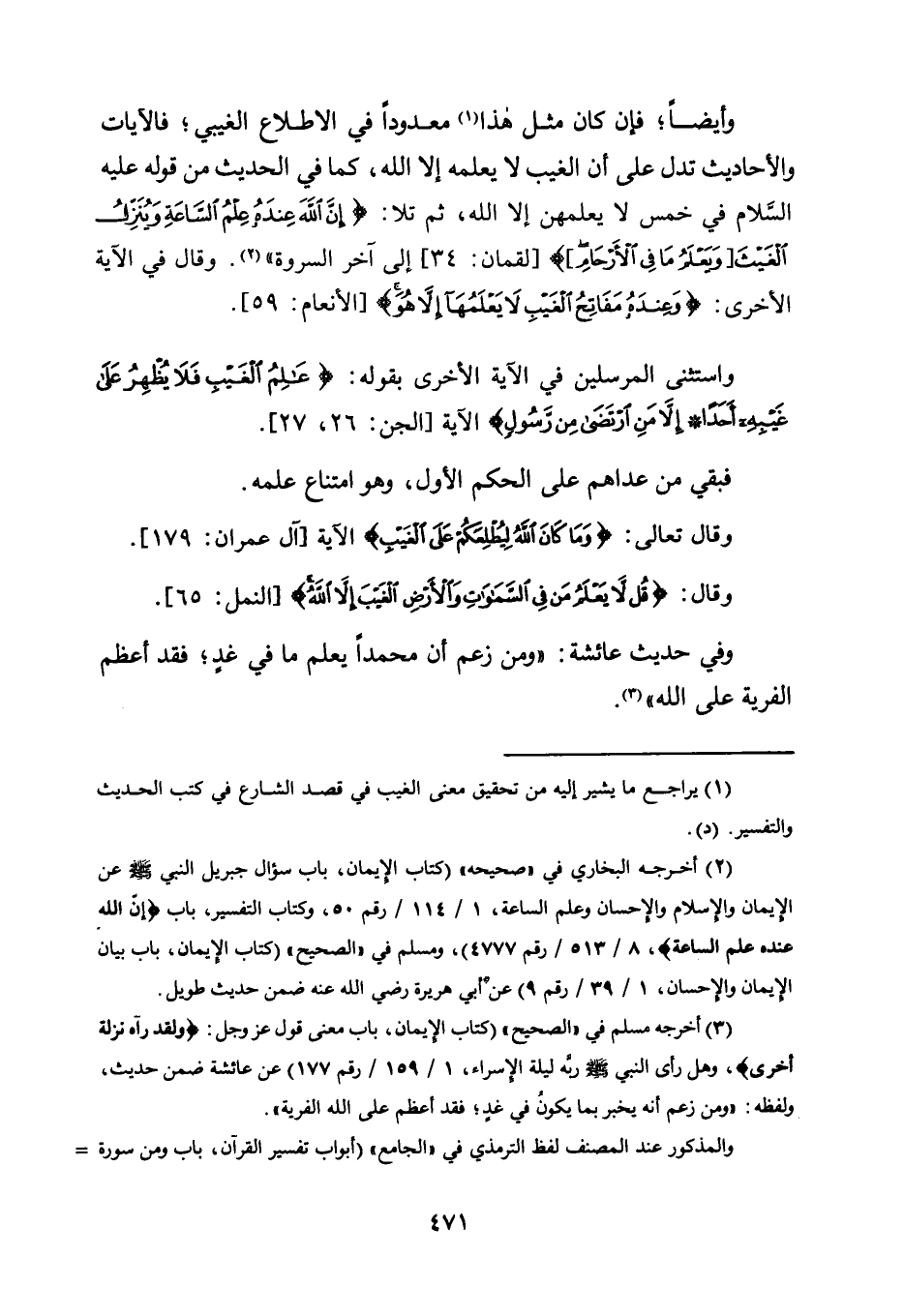 2 يراجع ما يشير إليه من تحقيق معنى الغيب في قصد الشارع في كتب الحديث والتفسير. "د".