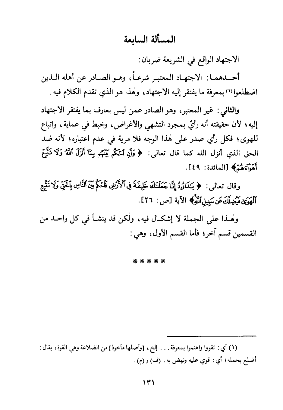 الِاجْتِهَادُ الْوَاقِعُ فِي الشَّرِيعَةِ ضَرْبَانِ: