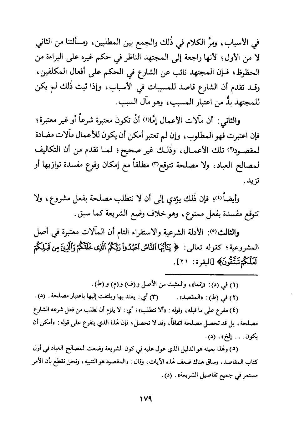 5 وهذا بعينه هو الدليل الذي عول عليه في كون الشريعة وضعت لمصالح العباد في أول كتاب المقاصد، وساق هناك ضعف هذه الآيات، وقال: "المقصود هو التنبيه، ونحن نَقْطَعُ بِأَنَّ الْأَمْرَ مُسْتَمِرٌّ فِي جَمِيعِ تَفَاصِيلِ الشريعة". "د".