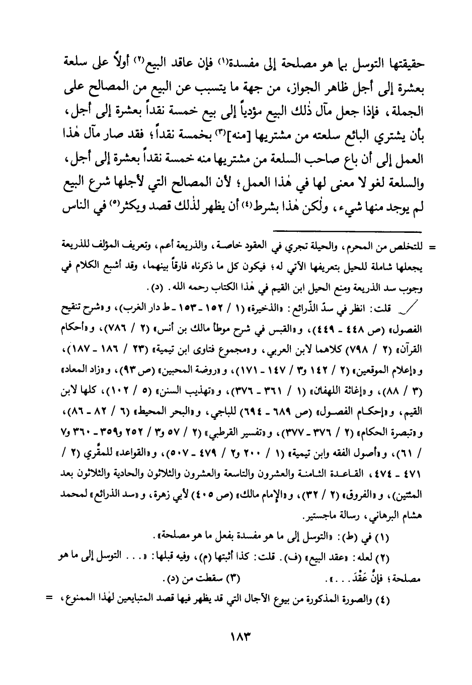 4 والصورة المذكورة من بيوع الآجال التي قد يظهر فيها قصد المتبايعين لهذا الممنوع، =
