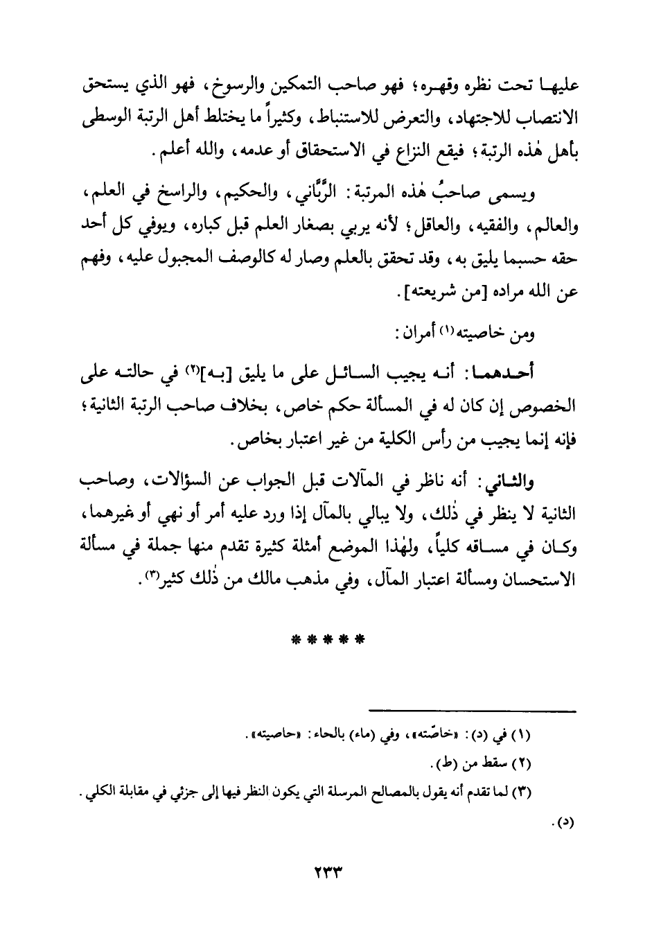 عَلَيْهَا تَحْتَ نَظَرِهِ وَقَهْرِهِ، فَهُوَ صَاحِبُ التَّمْكِينِ وَالرُّسُوخِ، فَهُوَ الَّذِي يَسْتَحِقُّ الِانْتِصَابَ لِلِاجْتِهَادِ، وَالتَّعَرُّضَ لِلِاسْتِنْبَاطِ، وَكَثِيرًا مَا يَخْتَلِطُ أَهْلُ الرُّتْبَةِ، الْوُسْطَى بِأَهْلِ هَذِهِ الرُّتْبَةِ، فَيَقَعُ النِّزَاعُ فِي الِاسْتِحْقَاقِ أَوْ عَدَمِهِ، وَاللَّهُ أَعْلَمُ.