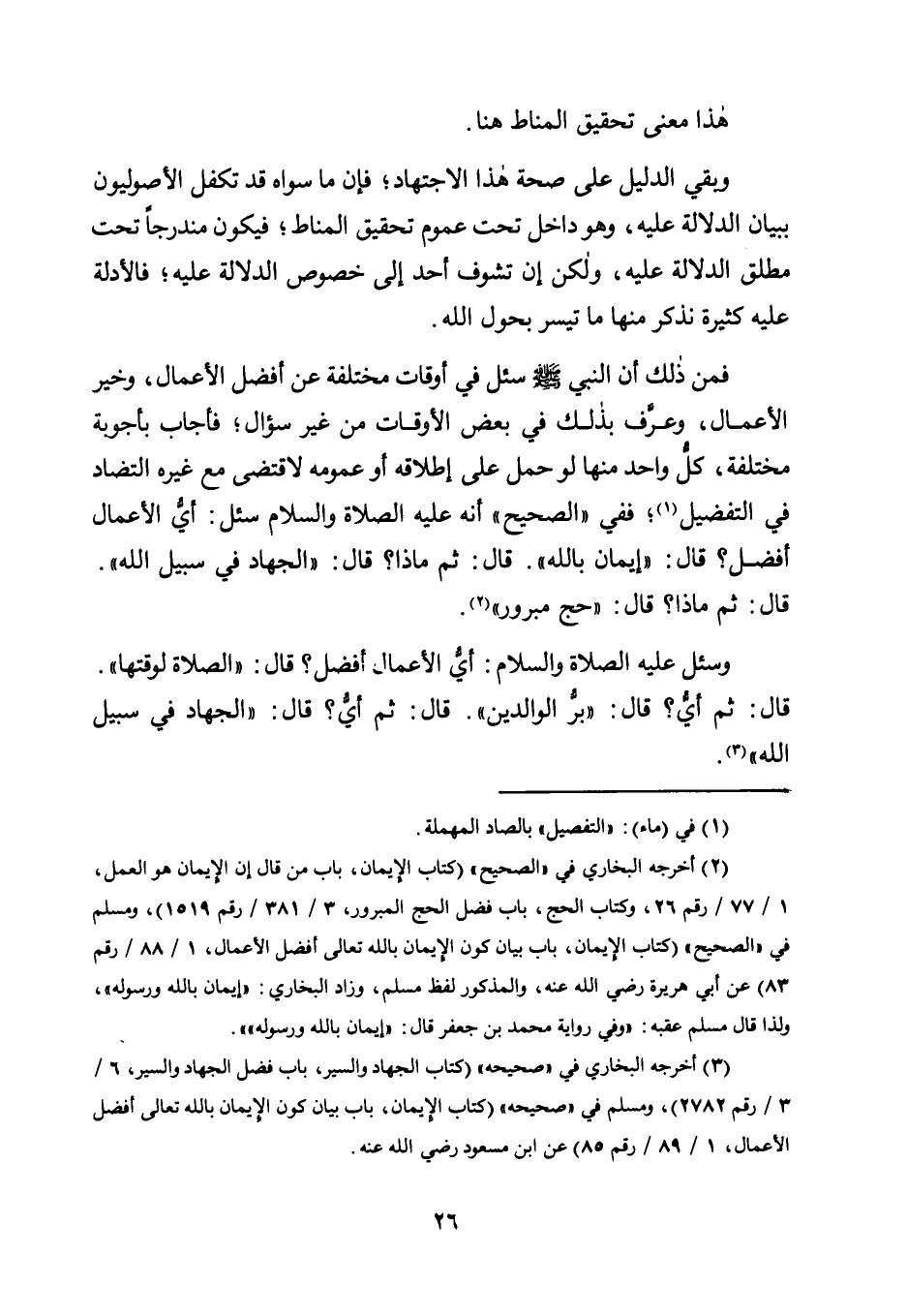 3 أخرجه البخاري في "صحيحه" "كتاب الجهاد والسير، باب فضل الجهاد والسير، 6/ 3 رقم 2782"، ومسلم في "صحيحه" "كتاب الإيمان، باب بيان كون الإيمان بالله تعالى أفضل الأعمال، 1/ 89/ رقم 85" عن ابن مسعود رضي الله عنه.