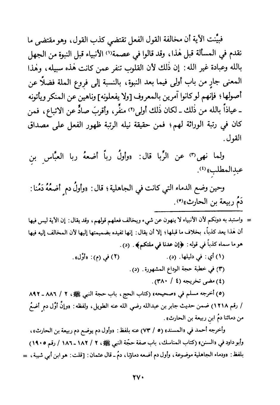5 أخرجه مسلم في "صحيحه" "كتاب الحج، باب حجة النبي صلى الله عليه وسلم 2/ 886-892/ رقم 1218" ضمن حديث جابر بن عبد الله رضي الله عنه الطويل، ولفظه: "وإن أول دم أضع من دمائنا دمُ ابن ربيعة بن الحارث".