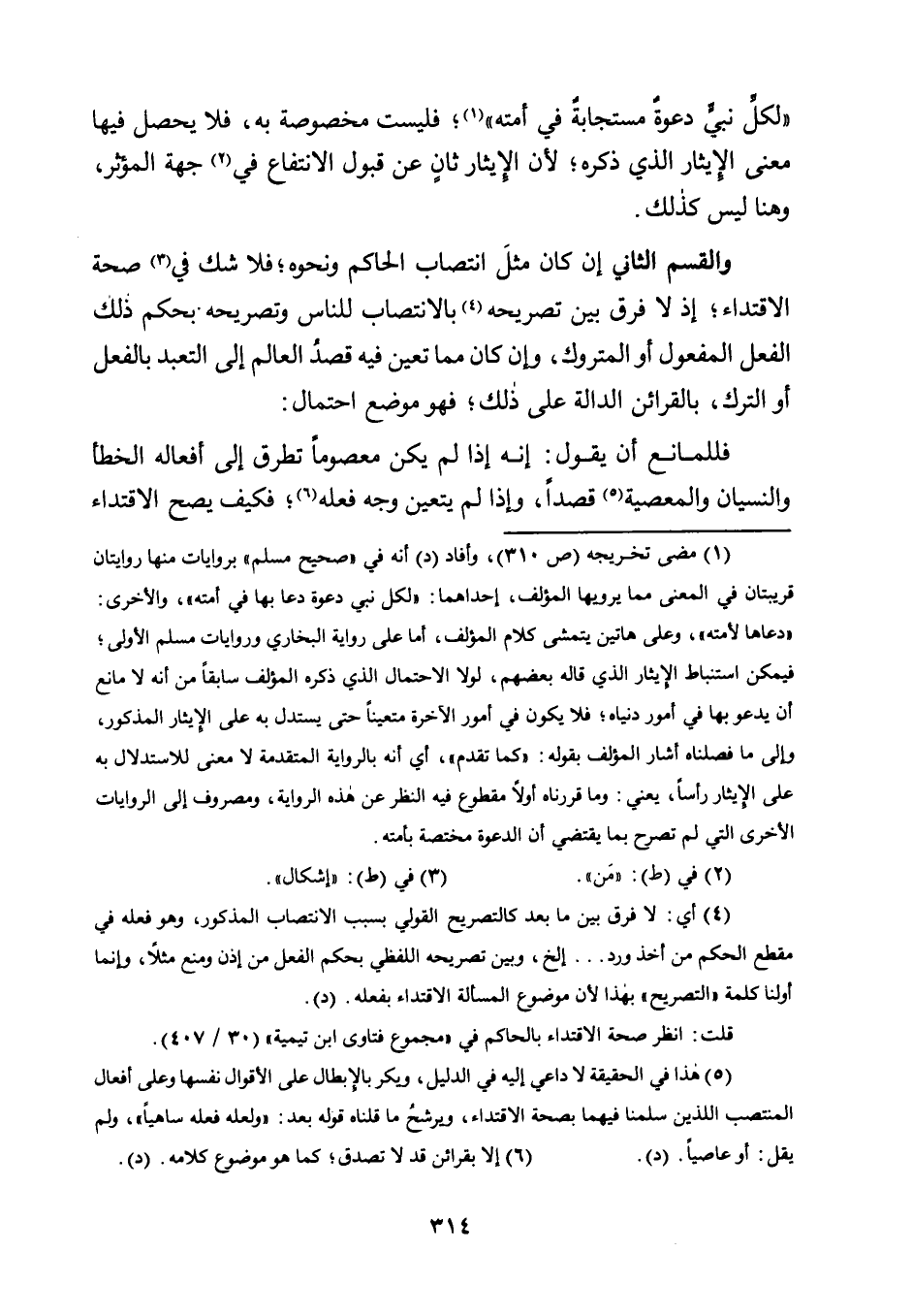 5 هذا في الحقيقة لا داعي إليه في الدليل، ويكر بالإبطال على الأقوال نفسها وعلى أفعال المنتصب اللذين سلمنا فيها بصحة الاقتداء، ويرشح ما قلناه قوله بعد: "ولعله فعله ساهيًا"، ولم يقل: أو عاصيًا. "د".