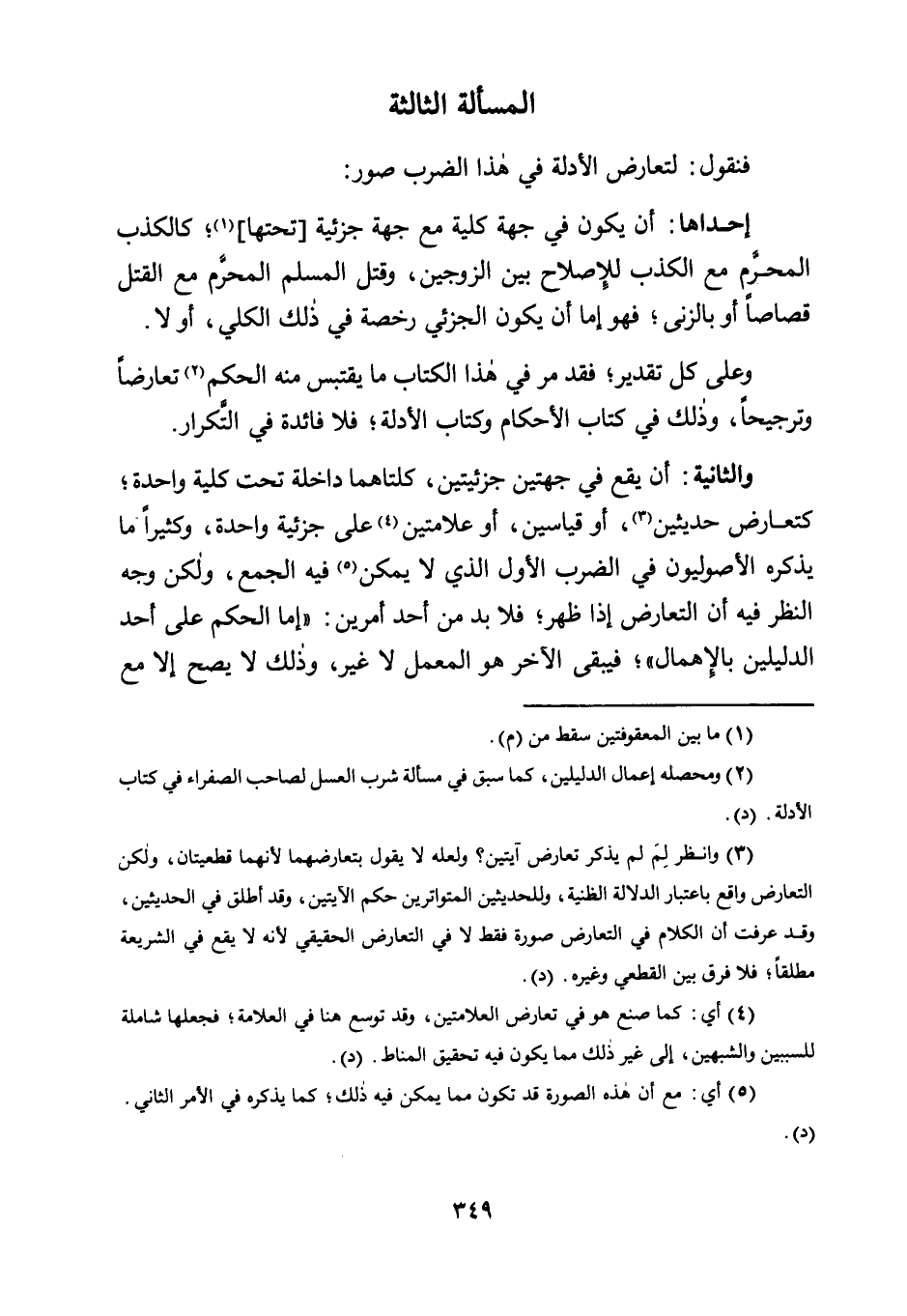 3 وانظر لِمَ لم يذكر تعارض آيتين؟ ولعله لا يقول بتعارضهما لأنهما قطعيتان، ولكن التعارض واقع باعتبار الدلالة الظنية، وللحديثين المتواترين حكم الآيتين، وقد أطلق في الحديثين، وقد عرفت أن الكلام في التعارض صورة فقط لا في التعارض الحقيقي؛ لأنه لا يقع في الشريعة مطلقًا؛ فلا فرق بين القطعي وغيره. "د".