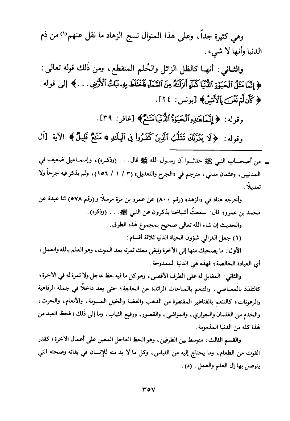 1 جعل الغزالي شئون الحياة الدنيا ثلاثة أقسام: