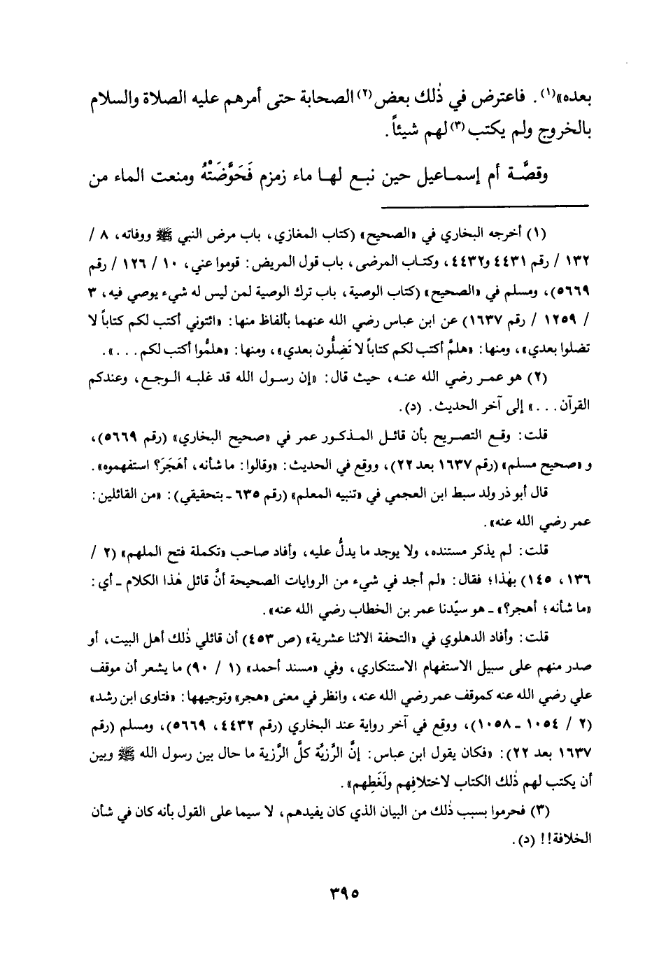 قلت: وأفاد الدهلوي في "التحفة الاثنا عشرية" "ص453" أن قائلي ذلك أهل البيت، أو صدر منهم على سبيل الاستفهام الاستنكاري، وفي "مسند أحمد" "1/ 90" ما يشعر أن موقف علي رضي الله عنه كموقف عمر رضي الله عنه؛ وانظر في معنى "هجر" وتوجيهها: "فتاوى ابن رشد" "2/ 1054-1058"، ووقع في آخر رواية عند البخاري "رقم 4432، 5669"، ومسلم "رقم 1637 بعد 22": "فكان يقول ابن عباس: إن الرزية كل الرزية ما حال بين رسول الله صلى الله عليه وسلم وبين أن يكتب لهم ذلك الكتاب لاختلافهم ولغطهم".