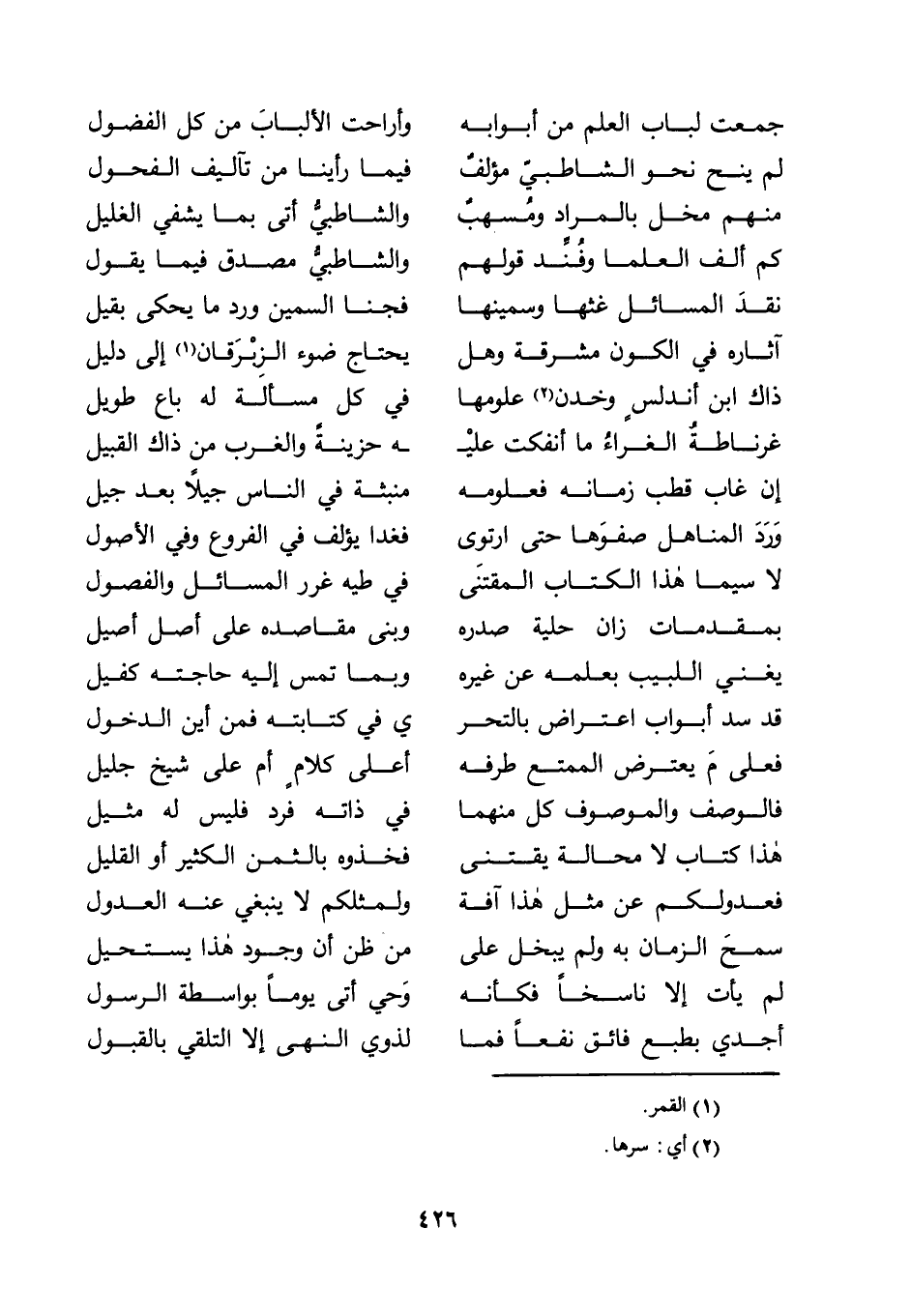 لا سيما هذا الكتاب المقتنى ... في طيه غرر المسائل والفصول