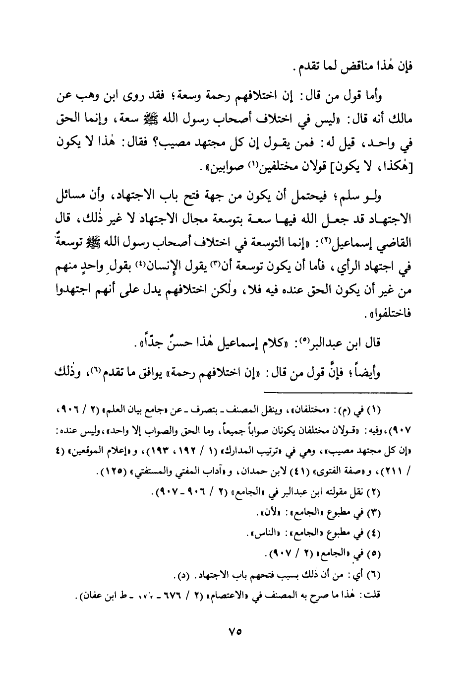 وَأَيْضًا؛ فَإِنَّ قَوْلَ مَنْ قَالَ: "إِنَّ اخْتِلَافَهُمْ رَحْمَةٌ" يُوَافِقُ مَا تقدم6، وذلك