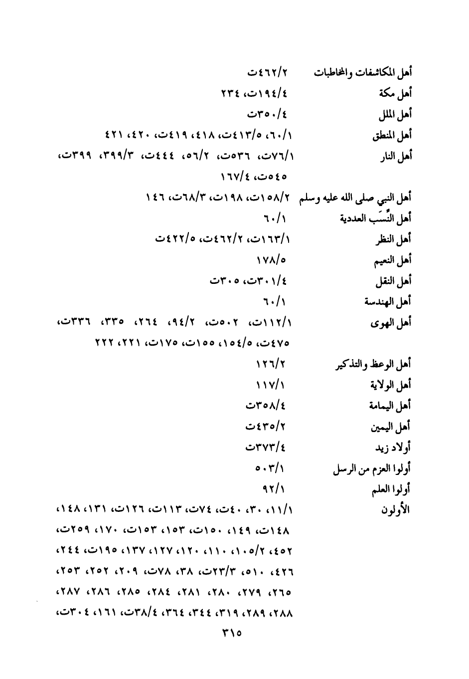 الأولون 1/11، 30، 40ت، 74ت، 113ت، 126ت، 131، 148، 148ت، 149، 150ت، 153، 153ت، 170، 259ت، 452، 2/105، 110، 120، 127، 137، 195ت، 244، 426، 510، 3/23ت، 38، 78ت، 209، 252، 253، 265، 279، 280، 281284، 285، 286، 287، 288، 289، 319، 344، 364، 4/38ت، 161، 304ت،