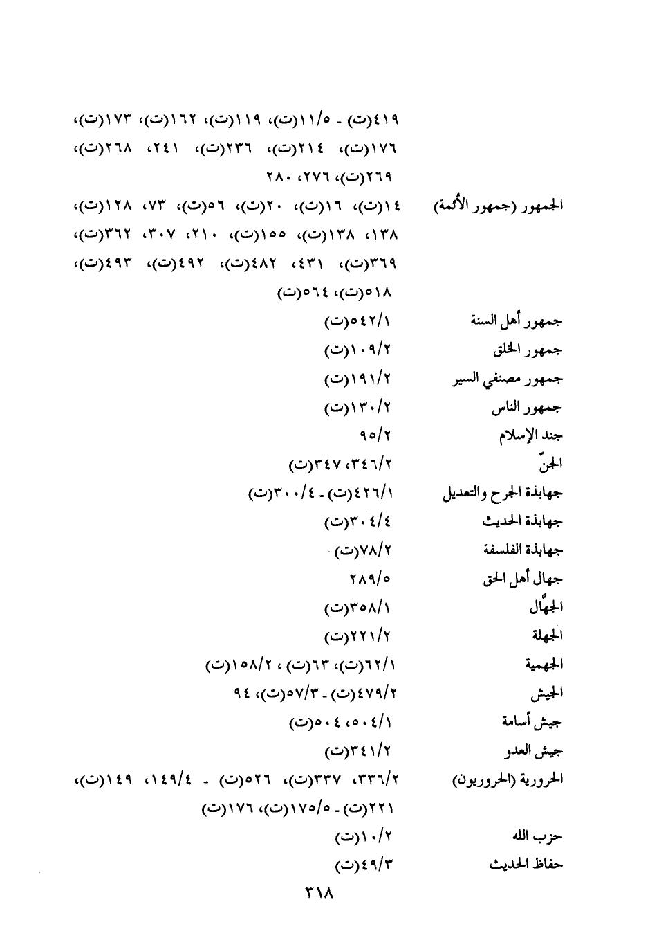 الجمهور "جمهور الأئمة" 14ت، 16ت، 20ت، 56ت، 73، 128ت، 138، 138ت، 155ت، 210، 307، 362ت، 369ت، 431، 482ت، 492ت، 493ت، 518ت، 564ت