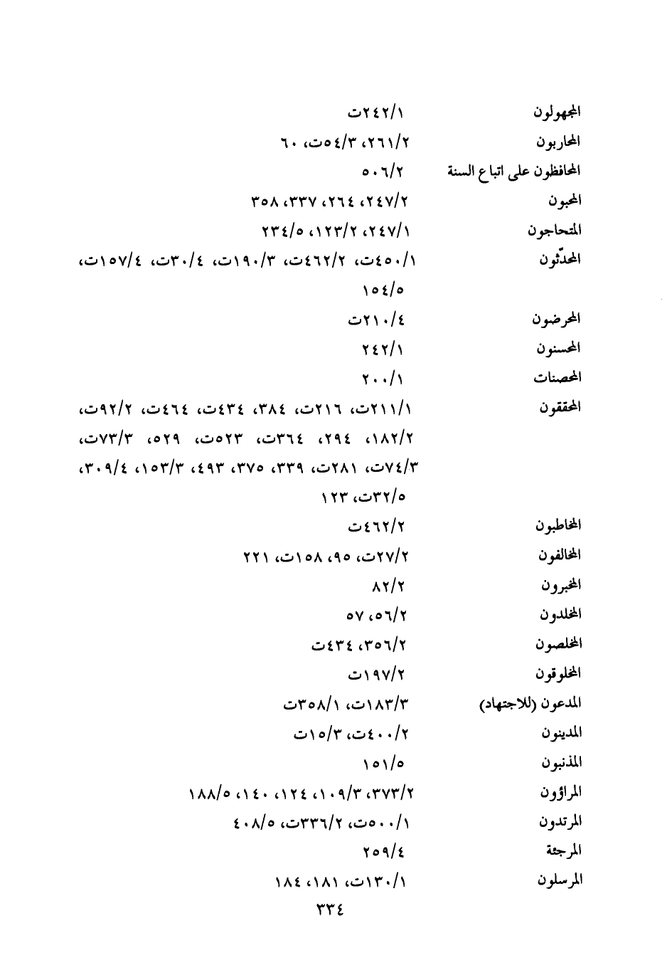 المحققون 1/211ت، 216ت، 384، 434ت، 464ت، 2/92ت، 2/182، 294، 364ت، 532، 529، 3/73ت، 5/32ت، 123