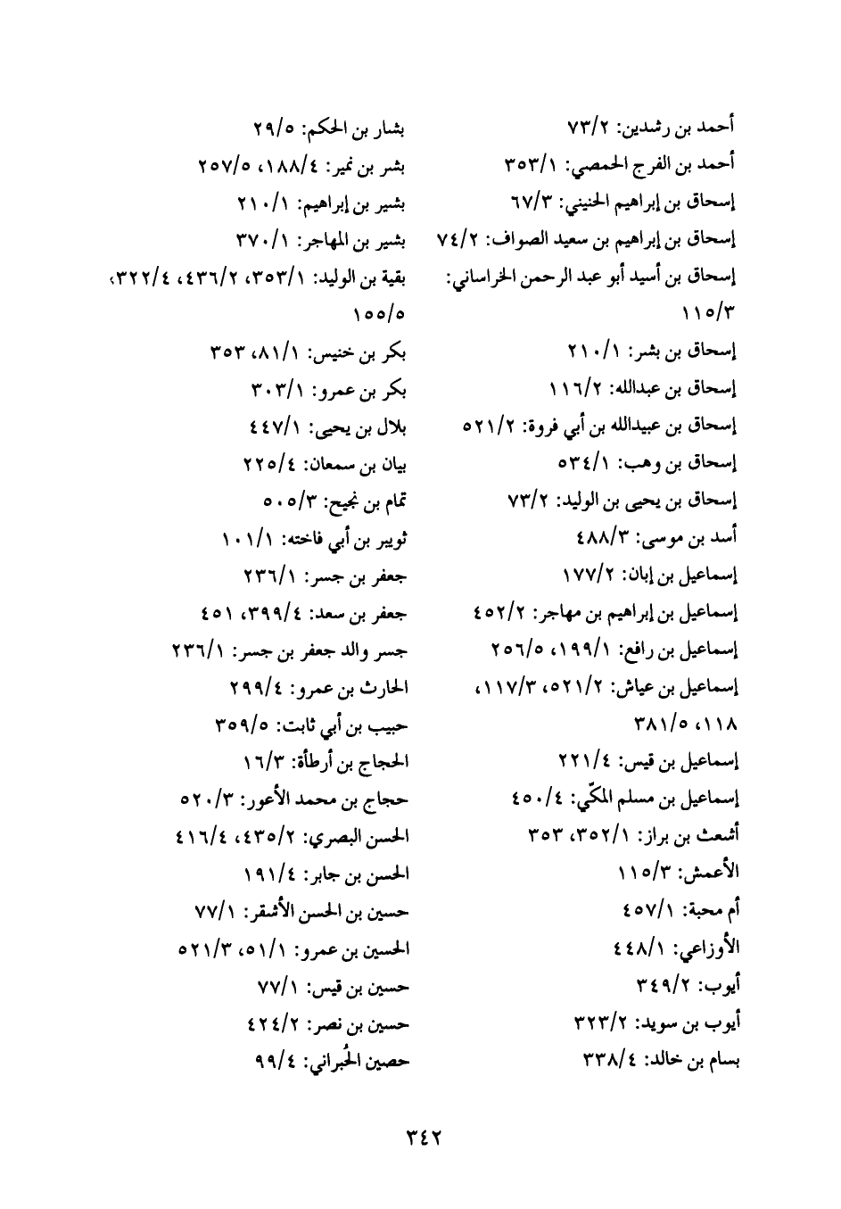 بقية بن الوليد: 1/353، 2/436، 4/322، 5/155