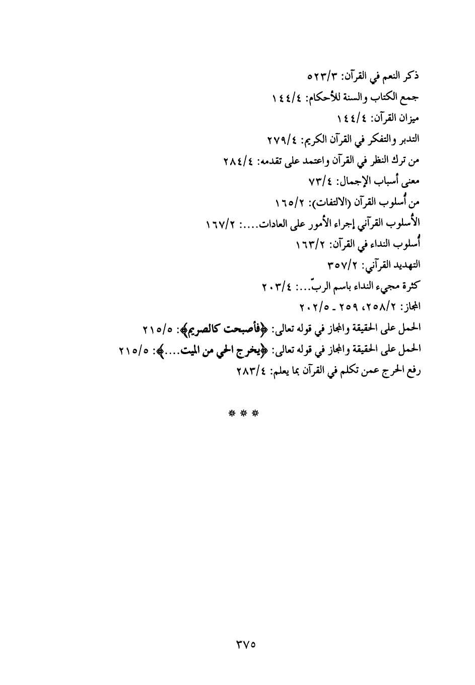 الحمل على الحقيقة والمجاز في قوله تعالى: {فأصبحت كالصريم} : 5/ 215