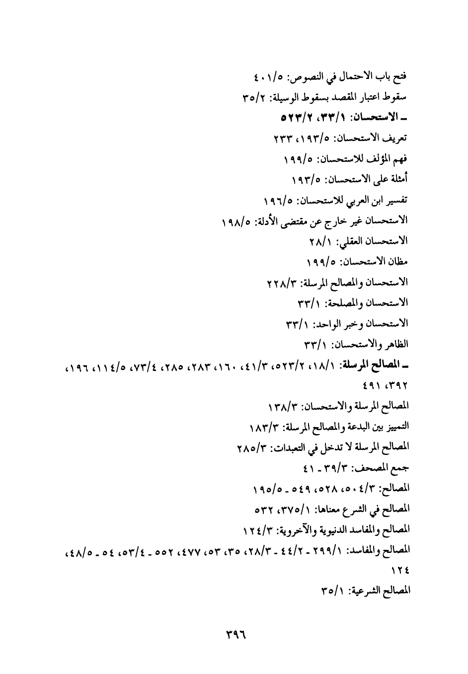 المصالح المرسلة: 1/ 18، 2/ 523، 3/ 41، 160، 283، 285، 4/ 73، 5/ 114، 196، 392، 491