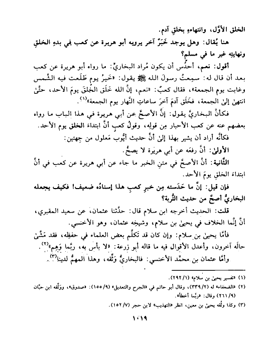 الثَّانية: أنَّ الأصحَّ في متنِ الخبر ما جاء عن أبي هريرة عن كعب في أنَّ ابتداءَ الخلقِ يومَ الأحد.