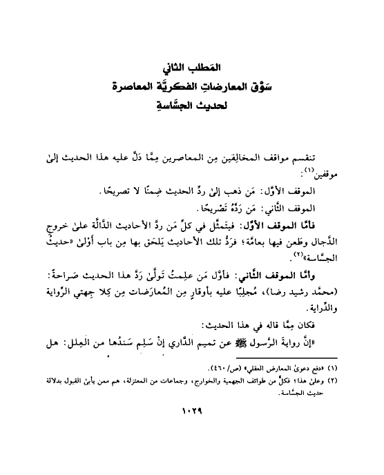 المَطلب الثاني سَوْق المعارضاتِ الفكريَّة المعاصرة لحديث الجسَّاسةِ