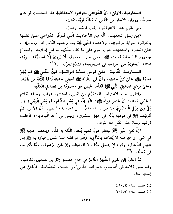 وفي تقريرِ هذا الاعتراض، يقول (رشيد رضا):
