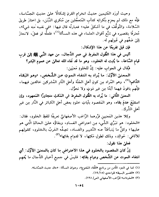 (¬١) كما في الجزء الثَّامن من برنامج «اللِّقاء المَفتوح»، وعنوان المسألة: «حال حديث الجسَّاسة».