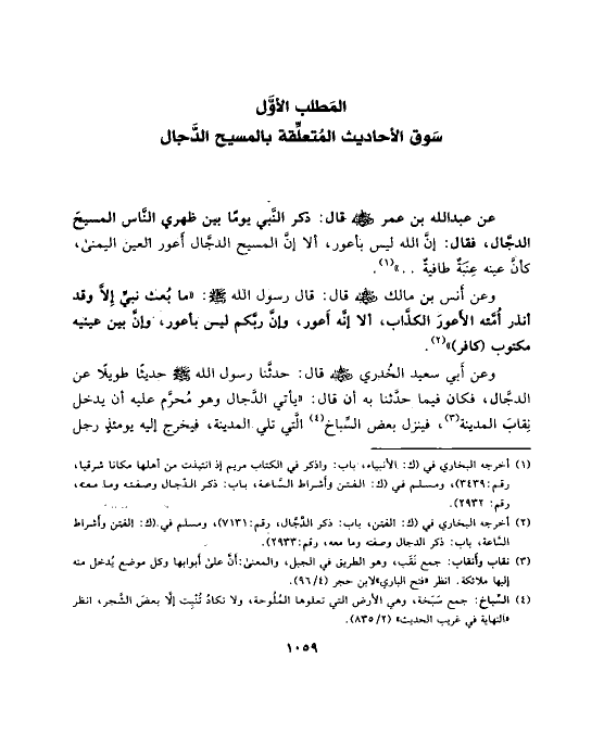 المَطلب الأوَّل سَوق الأحاديث المُتعلِّقة بالمسيح الدَّجال