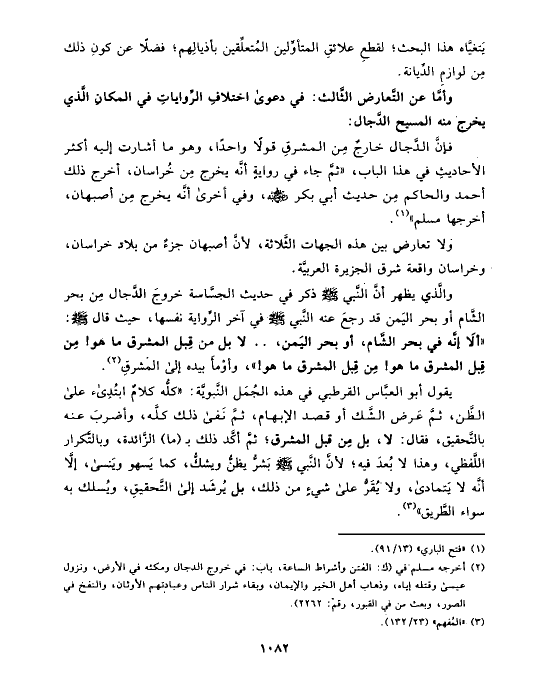وأمَّا عن التَّعارض الثَّالث: في دعوى اختلافِ الرِّواياتِ في المكانِ الَّذي يخرج منه المسيح الدَّجال:
