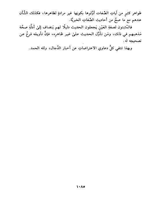 ظواهر كثيرٍ من آياتِ الصِّفات أوَّلوها بكونِها غير مرادةٍ لظاهرها، فكذلك الشَّأن عندهم مع ما صحَّ من أحاديث الصِّفاتِ الخبريَّة.