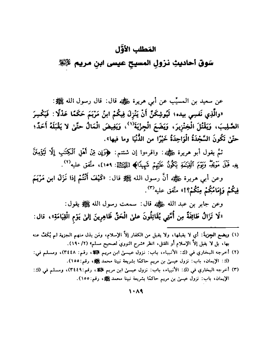المَطلب الأوَّل سَوق أحاديثِ نزولِ المسيحِ عيسى ابنِ مريم عليه السلام
