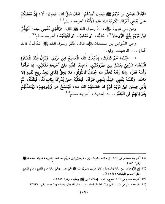 (¬١) أخرجه مسلم في (ك: الإيمان، باب: نزول عيسى ابن مريم حاكما بشريعة نبينا محمد صلى الله عليه وسلم، رقم: ١٥٦).