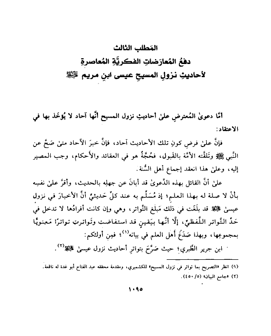 (¬١) انظر «التصريح بما تواتر في نزول المسيح» للكشميري، ومقدمة محققه عبد الفتاح أبو غدة له نافعة.