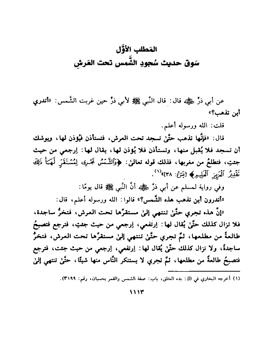 سَوق حديث سُجودِ الشَّمس تحت العَرشِ