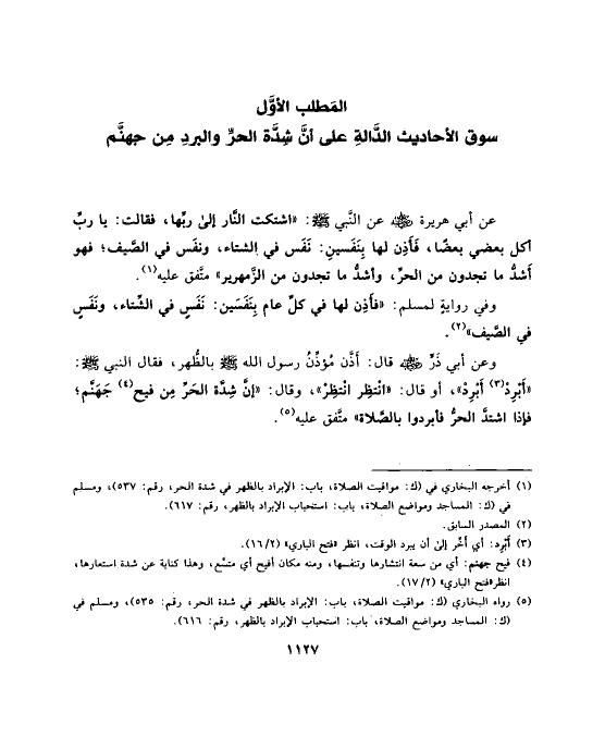 (¬٥) رواه البخاري (ك: مواقيت الصلاة، باب: الإبراد بالظهر في شدة الحر، رقم: ٥٣٥)، ومسلم في (ك: المساجد ومواضع الصلاة، باب: استحباب الإبراد بالظهر، رقم: ٦١٦).