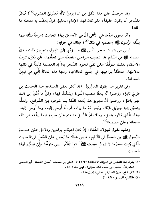 ليس في إثبات سحر النِّبي صلى الله عليه وسلم ما يؤدِّي إلى القول بتجويز ذلك، فإنَّ عصمته صلى الله عليه وسلم في التَّبليغ قد انتصبت البراهين القطعيَّة على تحقُّقِها، فلن يكون ثبوتُ الاعتقادِ بذلك متوقِّفًا على نفيِ لحوقِ السِّحر به! إذ العصمة ثابتةٌ في ذاتها بدلائلِها، متحقِّقةٌ ببراهينها في جميع الحالات، ومنها هذه الحالةُ الَّتي هي مَحلُّ المدافعة.