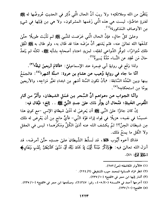 إنْ كان جائزًا على النَّبي صلى الله عليه وسلم أن يَعرِضَ له أذَى شيطانِ الإنسِ -مع كونِ هذا خسيسًا في نفسِه، هزيلًا في قِواه إزاءَ قوَّة النَّبي- فأيُّ مانعٍ مِن أن يَعْرِض له ذلك مِن شيطان الجِنِّ؟! ثمَّ يكشف الله عنه أذى الكُلِّ ومَكرَهما؛ ليس في العقلِ ولا النَّقل ما يمنعُ ذلك.