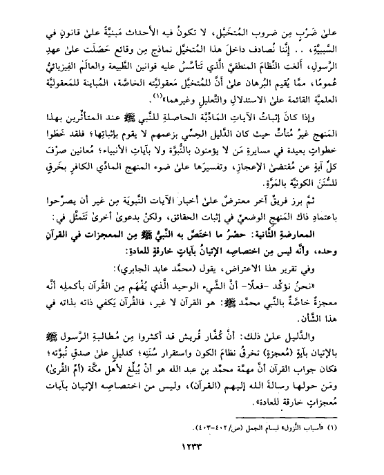 وفي تقرير هذا الاعتراض، يقول (محمَّد عابد الجابري):