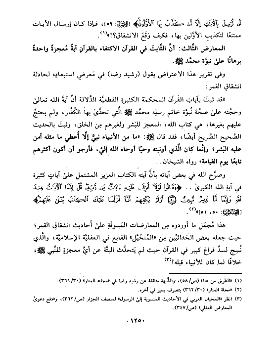 وفي تقرير هذا الاعتراض يقول (رشيد رضا) في مَعرضِ استبعادِه لحادثة انشقاقِ القمر:
