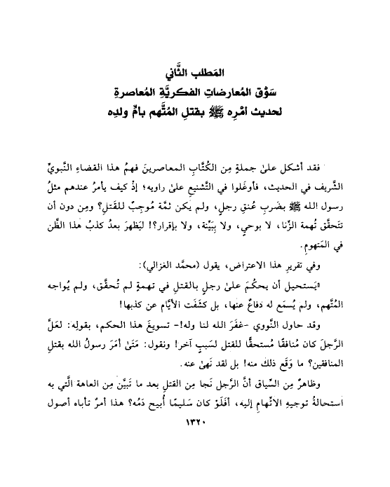 فقد أشكل على جملةٍ مِن الكُتَّابِ المعاصرينَ فهمُ هذا القضاءِ النَّبويِّ الشَّريف في الحديث، فأوغَلوا في التَّشنيعِ على راويه؛ إذْ كيف يأمرُ عندهم مثلُ رسول الله صلى الله عليه وسلم بضَربِ عُنقِ رجلٍ، ولم يكن ثمَّة مُوجِبٌ للقَتلِ؟ ومِن دون أن تتَحقَّق تُهمة الزِّنا، لا بوحيٍ، ولا بِبَيِّنة، ولا بإقرار؟! ليَظهرَ بعدُ كذبُ هذا الظَّن في المَتهومِ.