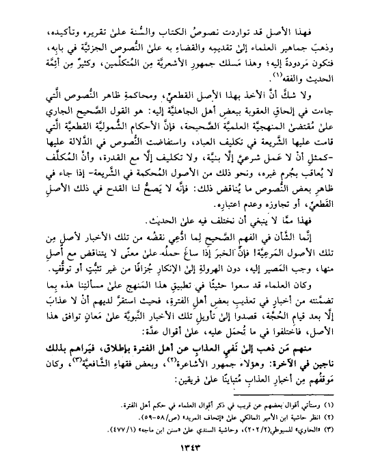 فهذا الأصل قد تواردت نصوصُ الكتاب والسُّنة على تقريره وتأكيده، وذهبَ جماهير العلماء إلى تقديمِه والقضاءِ به على النُّصوص الجزئيَّة في بابِه، فتكون مَردودةً إليه؛ وهذا مَسلك جمهورِ الأشعريَّة مِن المُتكلِّمين، وكثيرٌ مِن أئِمَّة الحديث والفقه (¬١).