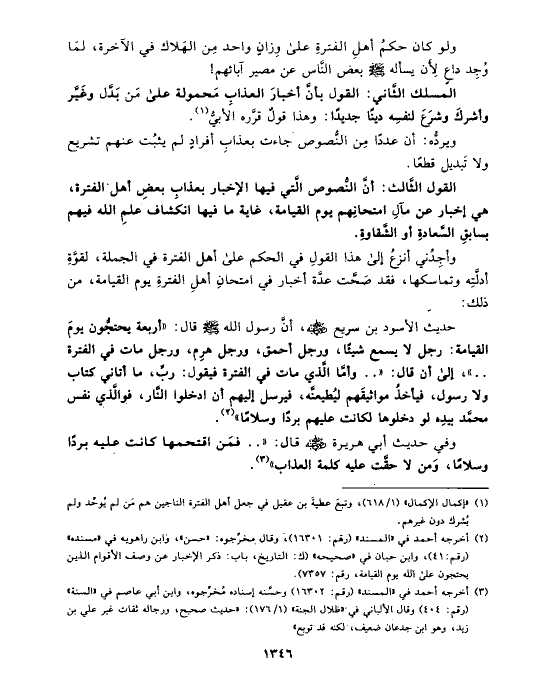 (¬١) «إكمال الإكمال» (١/ ٦١٨)، وتبعَ عطيةَ بن عقيل في جعل أهل الفترة الناجين هم مَن لم يُوحِّد ولم يُشرك دون غيرهم.