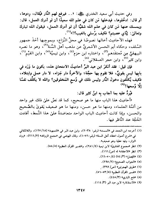فهذه الأحاديث أخالها نصوصًا في محلِّ النِّزاع، وبموجِبها أخَذَ جمهور السَّلف، وحكاه أبو الحسن الأشعريُّ عن مذهب أهل السُّنة (¬٢)، وهو ما نصره البيهقيُّ مِن مُعتقدهم (¬٣)، واختاره ابن حزم (¬٤)، وابن تيميَّة (¬٥)، وابن القيِّم (¬٦)، وابن كثير (¬٧)، وابن حجر العسقلاني (¬٨).