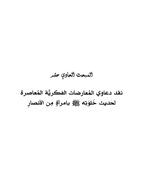 نقد دعاوي المُعارضات الفكريَّة المُعاصرة لحديث خَلوَتِه صلى الله عليه وسلم بامرأةٍ مِن الأنصارِ
