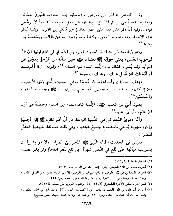 (¬٥) أخرجه أبو داود في (ك: الطهارة، باب: في الإكسال، رقم: ٢١٤)، والترمذي في (ك: الطهارة، باب: ما جاء أن الماء من الماء، رقم: ١١٠) واللفظ له، وقال: «هذا حديث حسن صحيح».